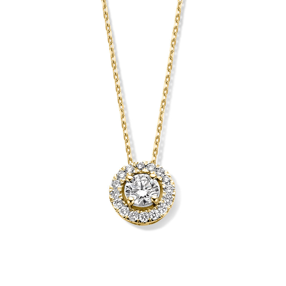 In der Aurore Jewelry-Kollektion finden Sie verschiedene Halsketten mit im Labor gezüchteten Diamanten. Halsketten, die Frauen nachhaltig zum Strahlen bringen. Zur Auswahl stehen Halsketten mit im Labor gezüchteten Diamanten in Entourage-Fassung oder stilvolle Solitäranhänger. Alle Halsketten bestehen aus einer feinen Kette mit Ankerglied aus 18 Karat recyceltem Gold. Das eigentliche Prunkstück ist natürlich der Anhänger mit Labordiamanten. Die Emma-Kollektion verfügt über einen Diamanten als Mittelstein, der von feineren Diamanten im Brillantschliff umgeben ist, was auch als Halo- oder Entourage-Fassung bezeichnet wird. Olivia strahlt Eleganz und Schlichtheit aus. In diesem Fall ist ein einzelner Labordiamant (Solitär genannt) das strahlende Zentrum. Entdecken Sie alles über unsere ethischen Diamanten.