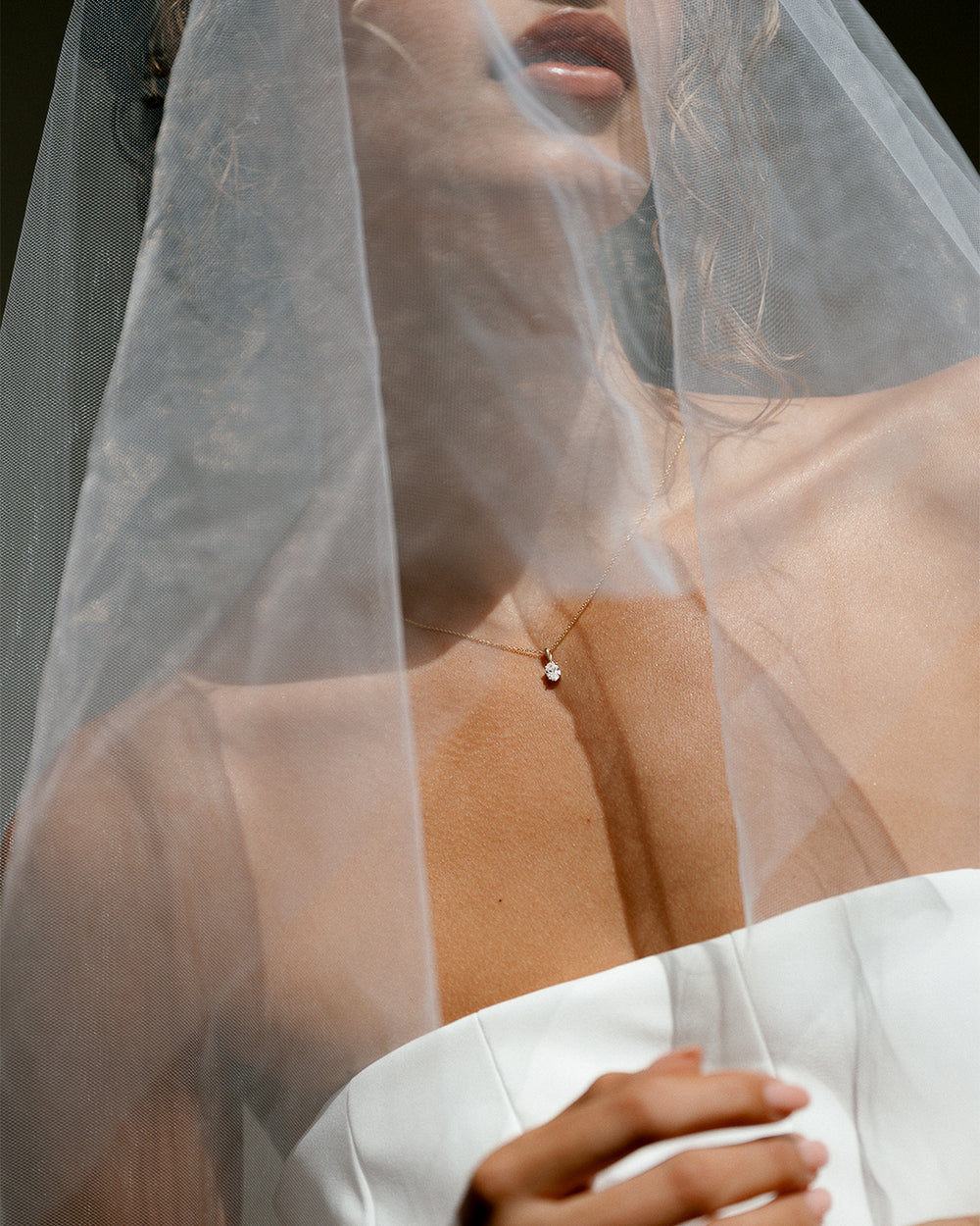 In der Aurore Jewelry-Kollektion finden Sie verschiedene Halsketten mit im Labor gezüchteten Diamanten. Halsketten, die Frauen nachhaltig zum Strahlen bringen. Zur Auswahl stehen Halsketten mit im Labor gezüchteten Diamanten in Entourage-Fassung oder stilvolle Solitäranhänger. Alle Halsketten bestehen aus einer feinen Kette mit Ankerglied aus 18 Karat recyceltem Gold. Das eigentliche Prunkstück ist natürlich der Anhänger mit Labordiamanten. Die Emma-Kollektion verfügt über einen Diamanten als Mittelstein, der von feineren Diamanten im Brillantschliff umgeben ist, was auch als Halo- oder Entourage-Fassung bezeichnet wird. Olivia strahlt Eleganz und Schlichtheit aus. In diesem Fall ist ein einzelner Labordiamant (Solitär genannt) das strahlende Zentrum. Entdecken Sie alles über unsere ethischen Diamanten.