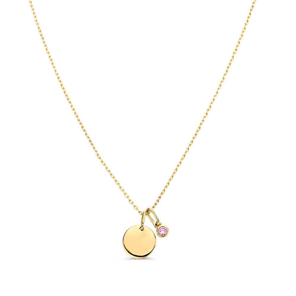 Halskette mit Gravurplatte + Pink-Diamant-Anhänger 0,05 ct. Gelbgold