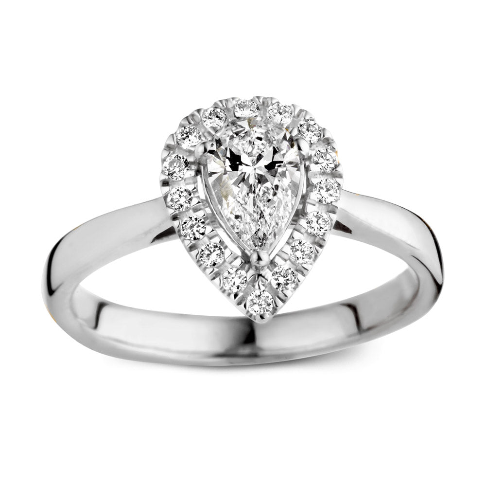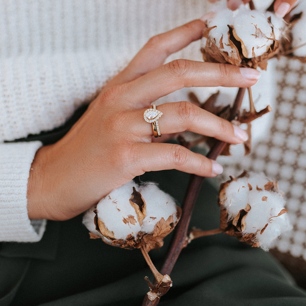 Ein echter Hingucker in der Kollektion ist dieser birnenförmige Elin-Ring! Der Fancy-Cut-Diamant ist in Tropfenform geschliffen und fällt daher sofort auf. Der Mittelstein ist außerdem von kleineren Diamanten im Brillantschliff umgeben, was für einen zusätzlichen Wow-Faktor sorgt. Der Ring hat eine anmutige erhabene Fassung, sodass er sich perfekt mit einem glatten Ring oder einem Ring mit Diamantreihen kombinieren lässt. Was halten Sie beispielsweise von unserem Millie-Ring ?