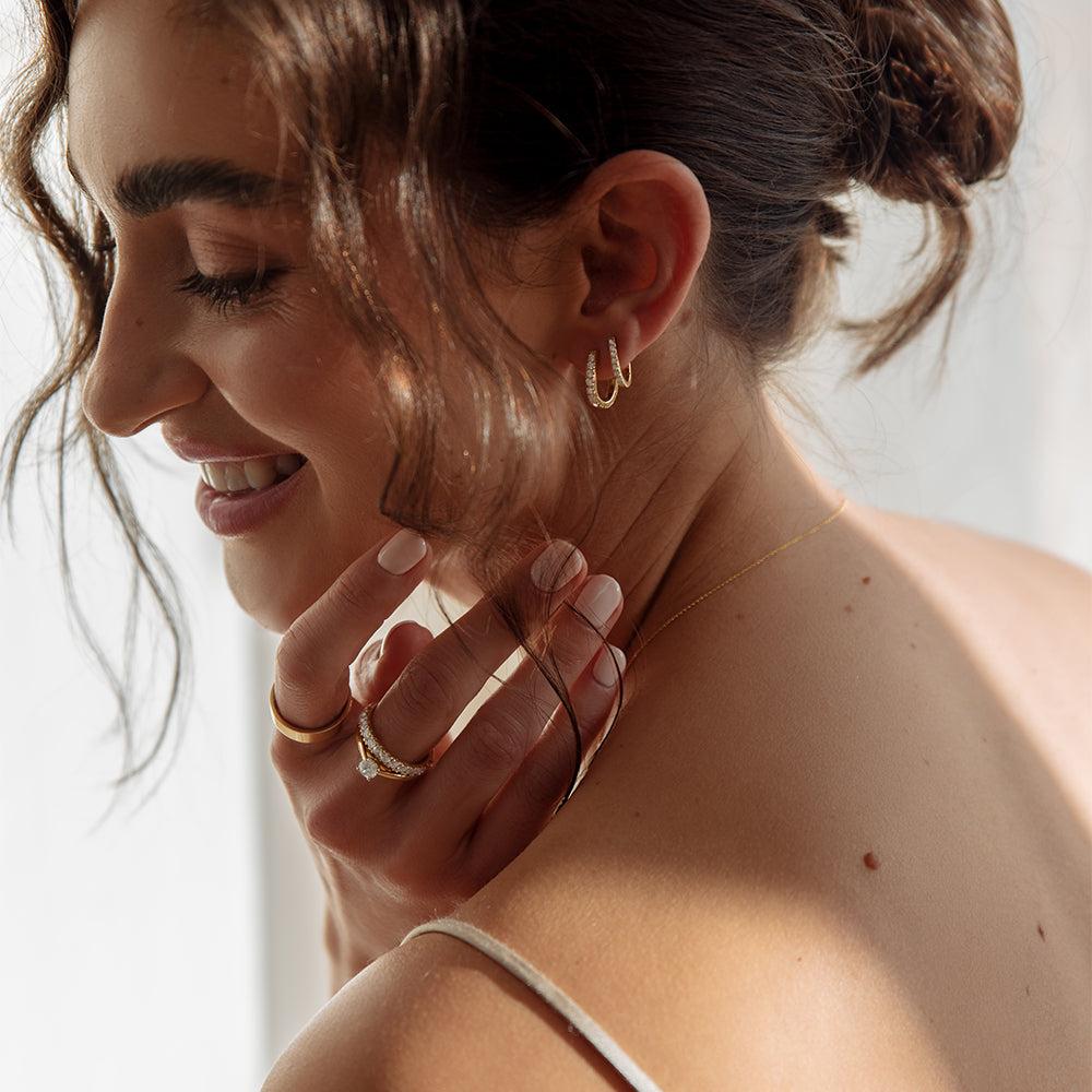 Der Schmuck von Aurore besteht aus 18 Karat recyceltem Gold. ein höherer Goldgehalt mit einem luxuriösen und warmen Aussehen.