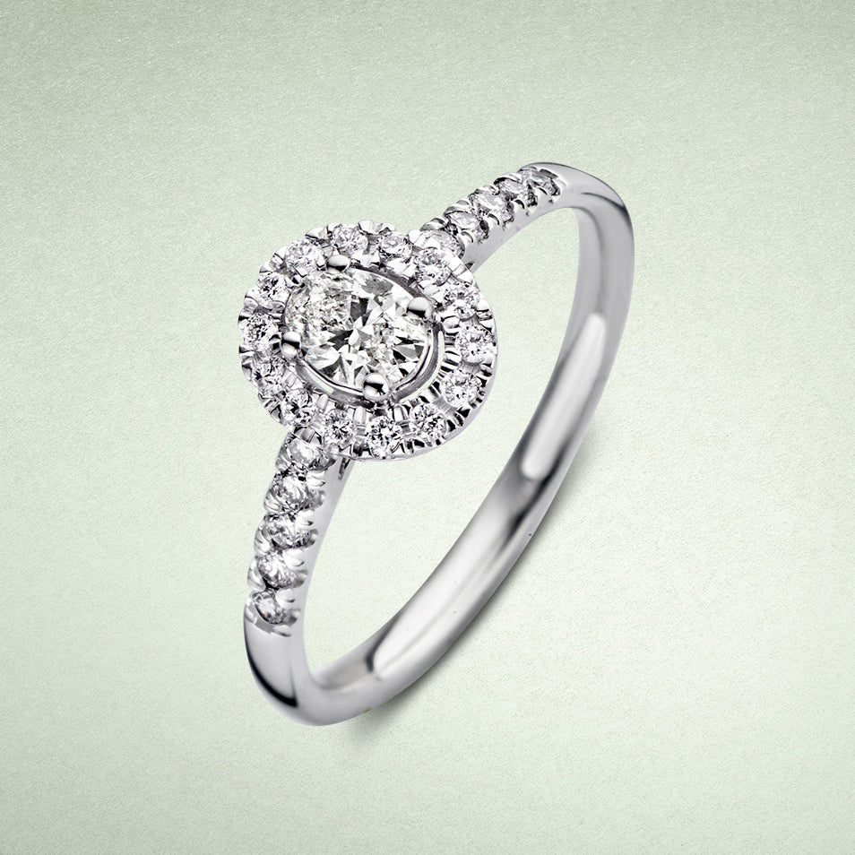 - Der ovale Schliff maximiert das Karatgewicht dank der relativ großen Oberseite.