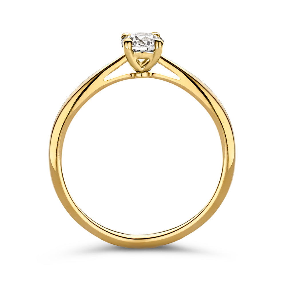 Die natürliche Farbe des Edelmetalls und noch immer die am häufigsten nachgefragte Goldfarbe in den Niederlanden. Um das Material fester zu machen und ihm eine warme Ausstrahlung zu verleihen, enthält die Legierung neben Gold auch geringe Mengen Silber und Kupfer. Diamantfassungen bei Gelbgoldschmuck bestehen häufig aus Weißgold, wodurch die Diamanten heller strahlen. Natürlich ist es auch möglich, einen Ring komplett aus Gelbgold anzufertigen.