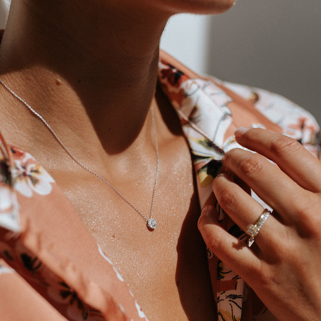 Auf den Fotos ist die Halskette Emma mit 0,20 ct. zu sehen. die obere der beiden.