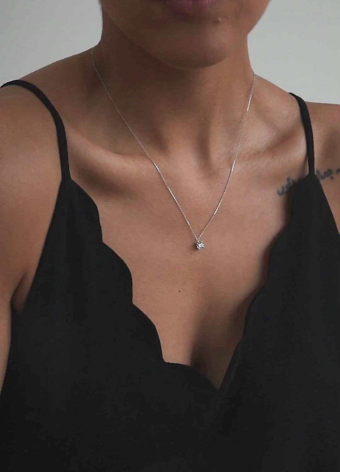 Die Halskette Olivia ist Teil unserer wunderschönen Solitärserie. Diese Kollektion enthält Solitärschmuck, der Eleganz und Schlichtheit ausstrahlt. Wählen Sie die gewünschte Steingröße Ihres Diamanten selbst aus. Der stilvolle Olivia-Anhänger ist in verschiedenen Größen erhältlich.